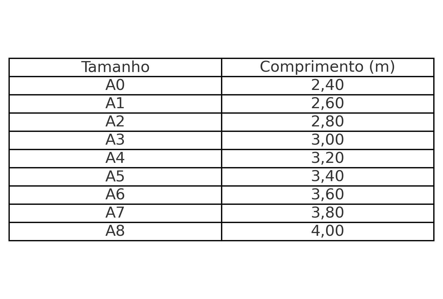 Leve, resistente e flexível, com peso médio entre 180g e 250g.